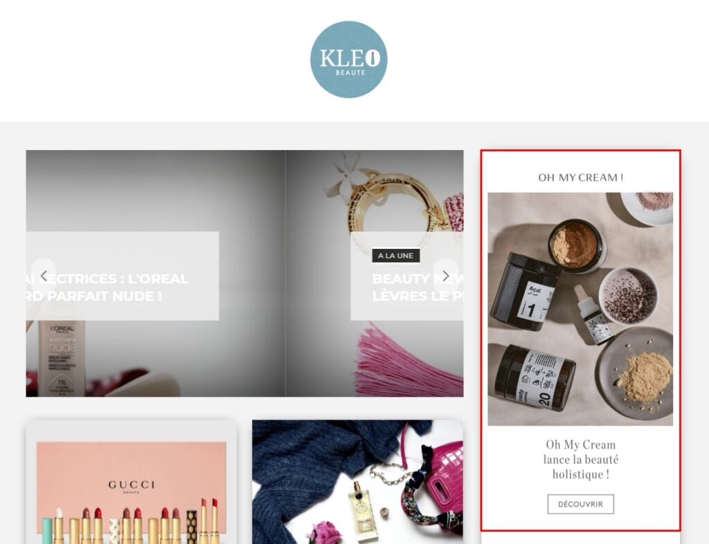 Par exemple, il est normal de trouver une publicité pour Oh My Cream (boutique en ligne de cosmétiques) sur le site d’une blogueuse beauté :